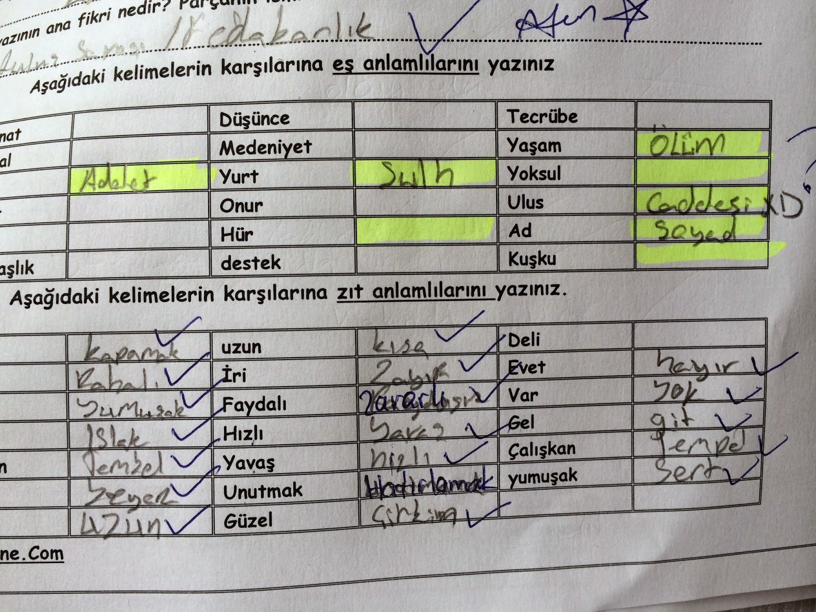 Ortaokulda sosyal bilgiler öğretmeninin test olarak verdiği sınavda, okula sadece vakit geçirmek için geldiğini düşündüğüm arkadaşın verdiği cevaptır.